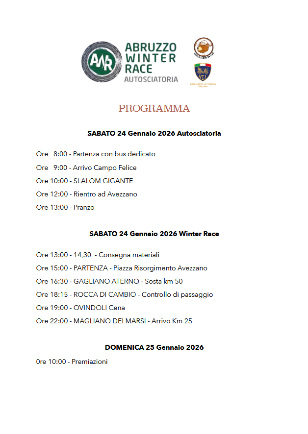 Compila la domanda d'iscrizione entro il 16 gennaio 2026 ed invia la unitamente alla copia del bonifico via WHATSAPP al numero +39 320 41 57 890 oppure via mail a info@abruzzodriversclub.it.